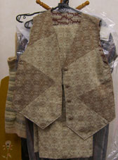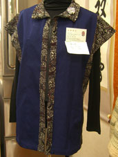 静子さん 襟 脇 後ろ身ごろに工夫がなされています。ジャガードのような生地を使い立体感が出ています。色の組み合わせがいいと思います。 |