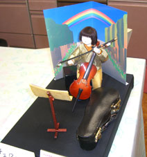 | クマさんかわいい顔をしたお人形がチェロを弾いている姿 前に立ててある楽譜がいいですね。細かいことが出来るクマさんを尊敬。 | 清子さん頑丈な椅子 好きこそものの上手なれ 若かりし頃男なら宮大工になっていたかも?出来ない私にはあこがれ。 |