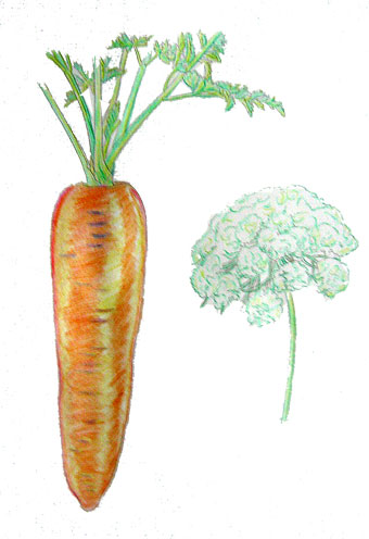 にんじんは生の甘さと食感が大好きです。剥げた所が難しかったです。花も小さい集まりなので繊細さが出ず色に苦労しました |