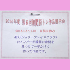 | 2014年度第6回隙間脳トレ展示会が始まりました | 色んな人の作品が所狭しと飾られました。 | MIさん手が込んでいます。1針1針愛情をこめて刺していったのでしょう。びっくりするほどきれいに下がっていました。 |