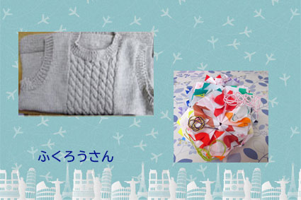 りりちゃん 器用ね。折紙でも編み物でもきちんとなさっていてお手本です。こいのぼり素敵ですね。お孫さんもお慶びでは?バッグもきれいな仕上がりで見習いたいものです。 |